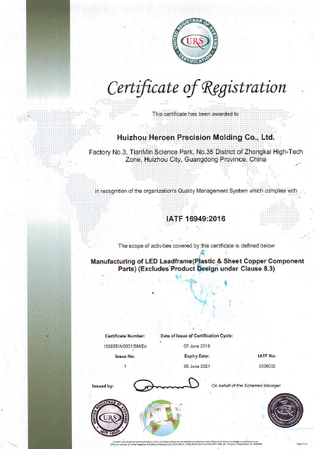 In June 2018, passed the IATF16949:2016 quality system certification.